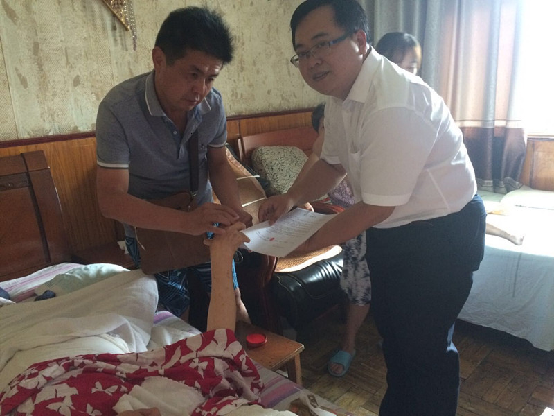 2018年9月2日,市二手房房票結(jié)算中心在接到一戶因房票權(quán)利人中風(fēng)癱瘓后常年臥床,無法到達(dá)結(jié)算服務(wù)大廳現(xiàn)場辦理業(yè)務(wù),需提供上門服務(wù)的申請后,結(jié)算中心組織安排前臺工作人員程松同志攜帶相關(guān)材料上門為其現(xiàn)場辦理了業(yè)務(wù),受到客戶的稱贊。