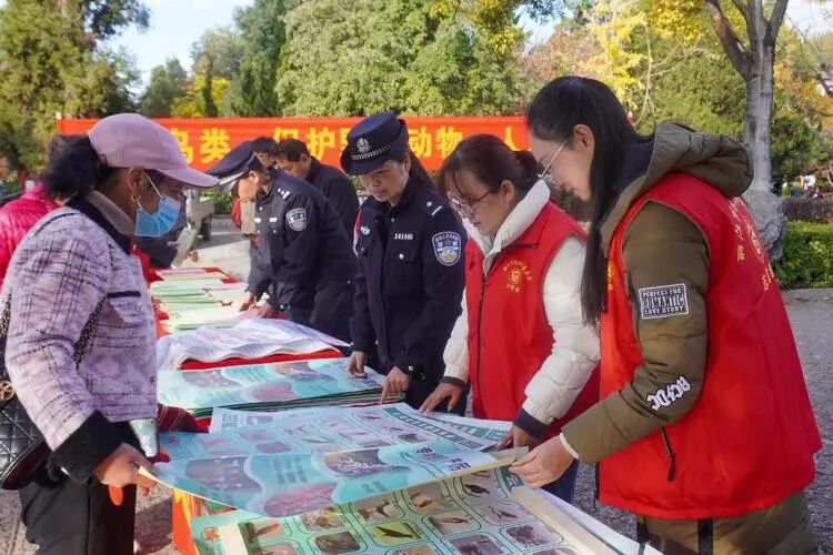 活動現(xiàn)場,“保護鳥類,保護野生動物,人人有責”“人人護林愛鳥,處處山青水秀”等醒目的宣傳橫幅懸掛于各處。工作人員向市民與游客發(fā)放《中華人民共和國野生動物保護法》《麗江市野生動植物保護知識宣傳單》及聯(lián)合倡議書等宣傳材料,并設(shè)立咨詢臺,耐心解答公眾關(guān)于鳥類保護、相關(guān)法律法規(guī)及舉報途徑等熱點問題,呼吁市民自覺抵制非法交易、食用野生動物及銷售禁用獵捕工具等行為,積極舉報相關(guān)違法線索。